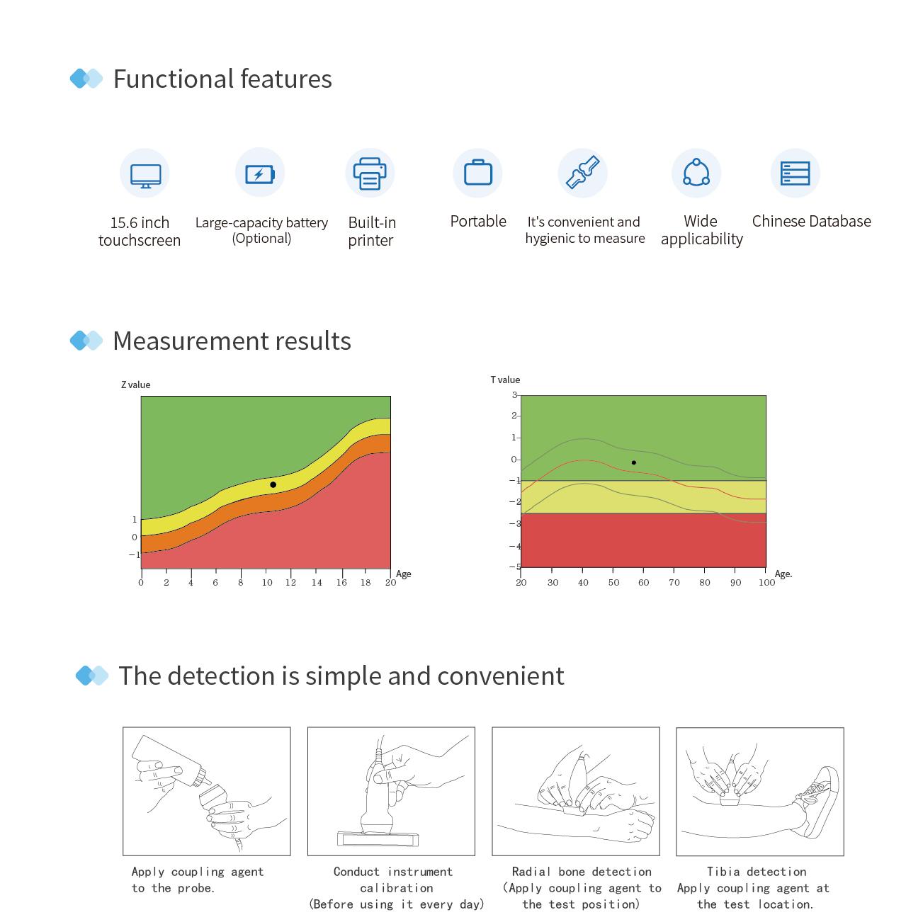 Scope of Application: Uses ultrasound to detect the bone density value of patella or phalanx.