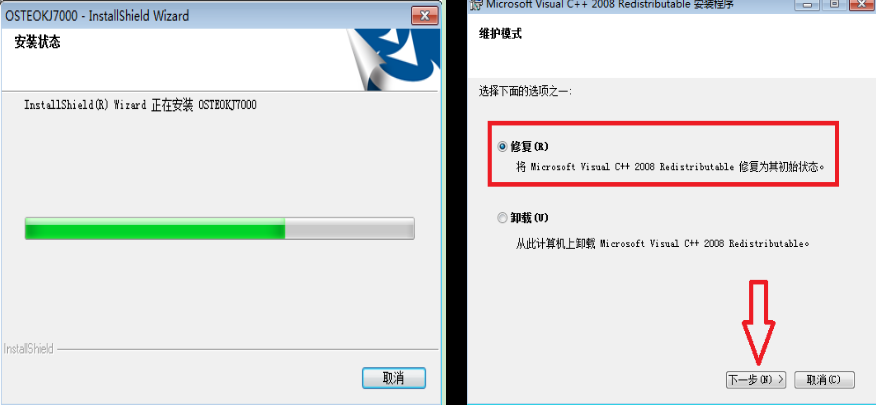 9、 此時正在安裝軟件,選擇----修復(fù),點擊----下一步