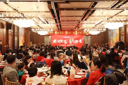 席間,領(lǐng)導(dǎo)、員工、家屬、嘉賓之間相互敬酒,互致新春問候和祝福,相互拜年,親切和睦,整個(gè)會(huì)場洋溢著熱烈歡快的氣氛。