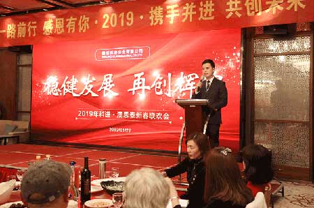 然后澳思泰總經(jīng)理俞政濤發(fā)表新年致辭,他說,2018年公司取得了驕人的業(yè)績,總銷售收入和利稅增長超過30%,共取得19項(xiàng)知識(shí)產(chǎn)權(quán),企業(yè)管理水平進(jìn)一步提升,他代表公司感謝全體員工、家屬和各界朋友!2019年公司要加大技術(shù)創(chuàng)新力度,以滿足用戶需求為目標(biāo),加強(qiáng)內(nèi)部管理,“穩(wěn)健發(fā)展,再創(chuàng)輝煌”。隨后他宣布:聯(lián)歡晚會(huì)正式開始!