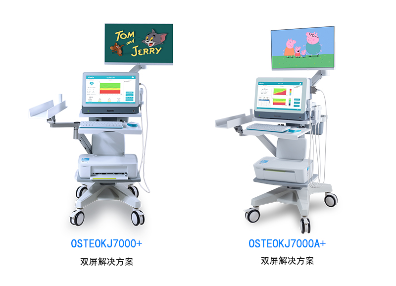 南京科進實業有限公司的超聲骨密度儀OSTEOKJ7000+雙屏臺車解決方案進行兒童骨密度測定。大量臨床研究證實,該儀器能快速靈敏反應兒童骨質情況,適用于不同年齡的兒童人群,而且采用超聲波測量法,操作簡單,無創,。此外,這款超聲骨密度儀的全套解決方案配備雙屏顯示,可播放兒童動畫功能,在檢測過程中,吸引兒童注意力,方便醫生操作儀器,更適用兒童的骨密度測定。定期監測骨密度不僅可以篩查鈣缺乏,而且能評估臨床干預效果。